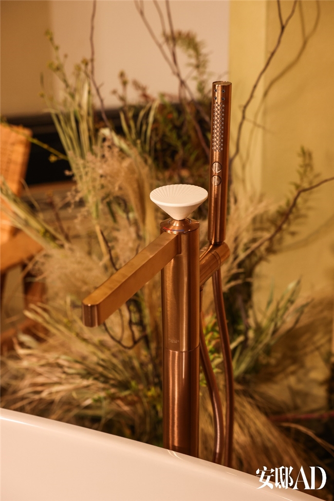 在本届AD Corner展区,科勒携两款代表性卫浴作品登场,来自科勒高端产品线——科勒精选(Kohler Exquisite)的旭珂1.7米椭圆形清雅石纹理浴缸(风舞漫沙),以及芮怡落地式浴缸花洒龙头。作为本次“东方自然之韵”主题展陈的重要一环,科勒展区以松竹植艺与大地色系构筑出温润的空间秩序,步入其间,能在光影流动中感受到自然的呼吸节奏。旭珂浴缸、芮怡龙头的材质、线条及水感与空间相互映衬,共同营造出流动而宁静的东方意境。