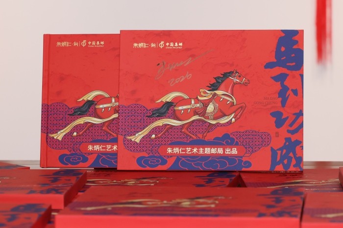 另一件重磅亮相的,是由朱炳仁艺术主题邮局出品的《马到功成》纪念邮册。这也是朱炳仁推出的第八套生肖主题邮册,内页不仅收录了《丙午年》特种邮票,更融入一系列马年文创新品,在方寸之间讲述生肖故事、传递非遗技艺,展现出中国文化创新发展的蓬勃气象。