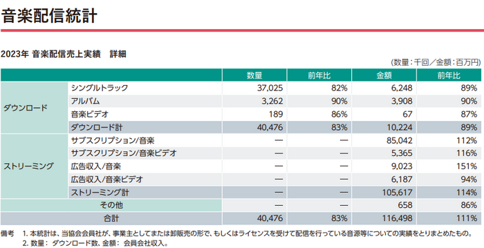 2023年日本网络音乐市场规模达1165亿日元,同比增长11%,连续10年保持增长势头,连续6年实现两位数增长。