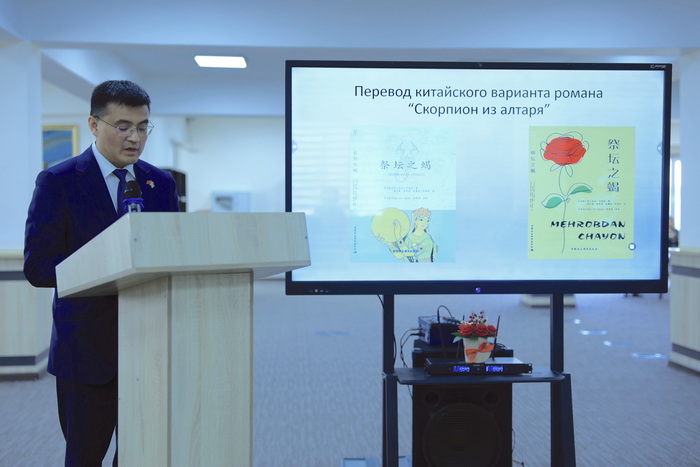 4月8日,为纪念乌兹别克斯坦著名作家阿卜杜拉·卡迪里130周年诞辰,阿卜杜拉·卡迪里长篇小说《往昔》《祭坛之蝎》中文译著发布仪式在塔什干国立东方大学图书馆举行。中国驻乌兹别克斯坦大使于骏、使馆参赞迟润林、著作译