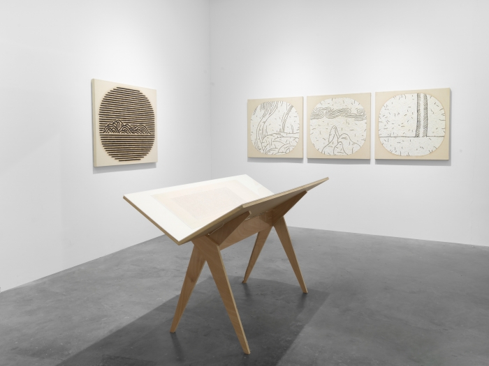 在申凡于2006年第六届上海双年展上展出的综合装置《山水—纪念黄宾虹》(2006)中,不仅将他90年代的架上笔墨探索用综合装置呈现,还涵盖了声音、灯光和场域多重元素,也是申凡将自己对黄宾虹的研究理论用视觉化和感官化的方式在当代艺术场域中实践。对了,在本次香格纳个展中有一个惊喜“彩蛋”:特别展出《纪念黄宾虹—山水》的设计草图和2006年上海双年展装置的录像,非常难得。