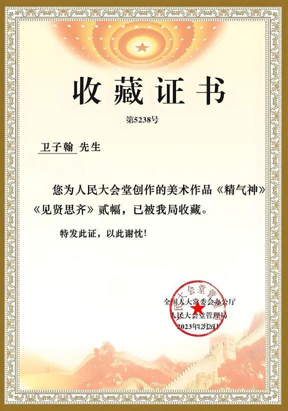 著名书法家卫子翰作品被人 民 大 会 堂 管理 局纳入收藏
