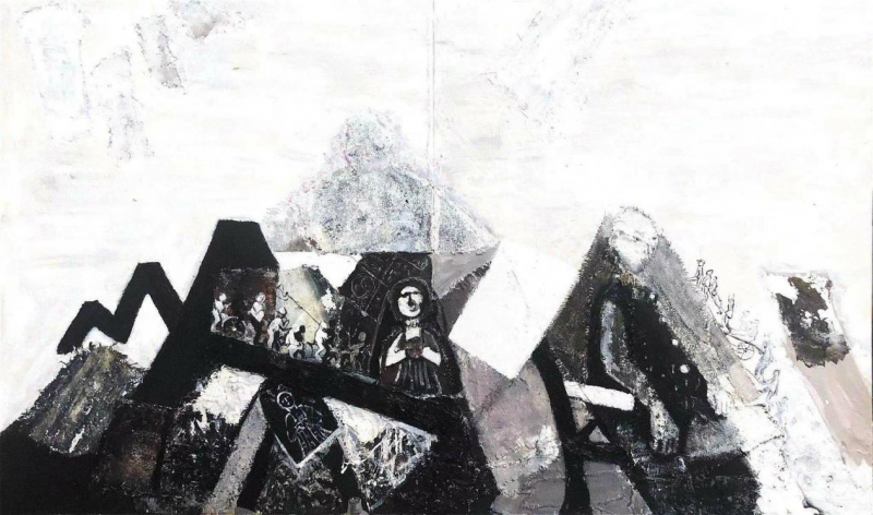 陈燕财 综合材料绘画《峦影佛心》 2020年 200x100cm
